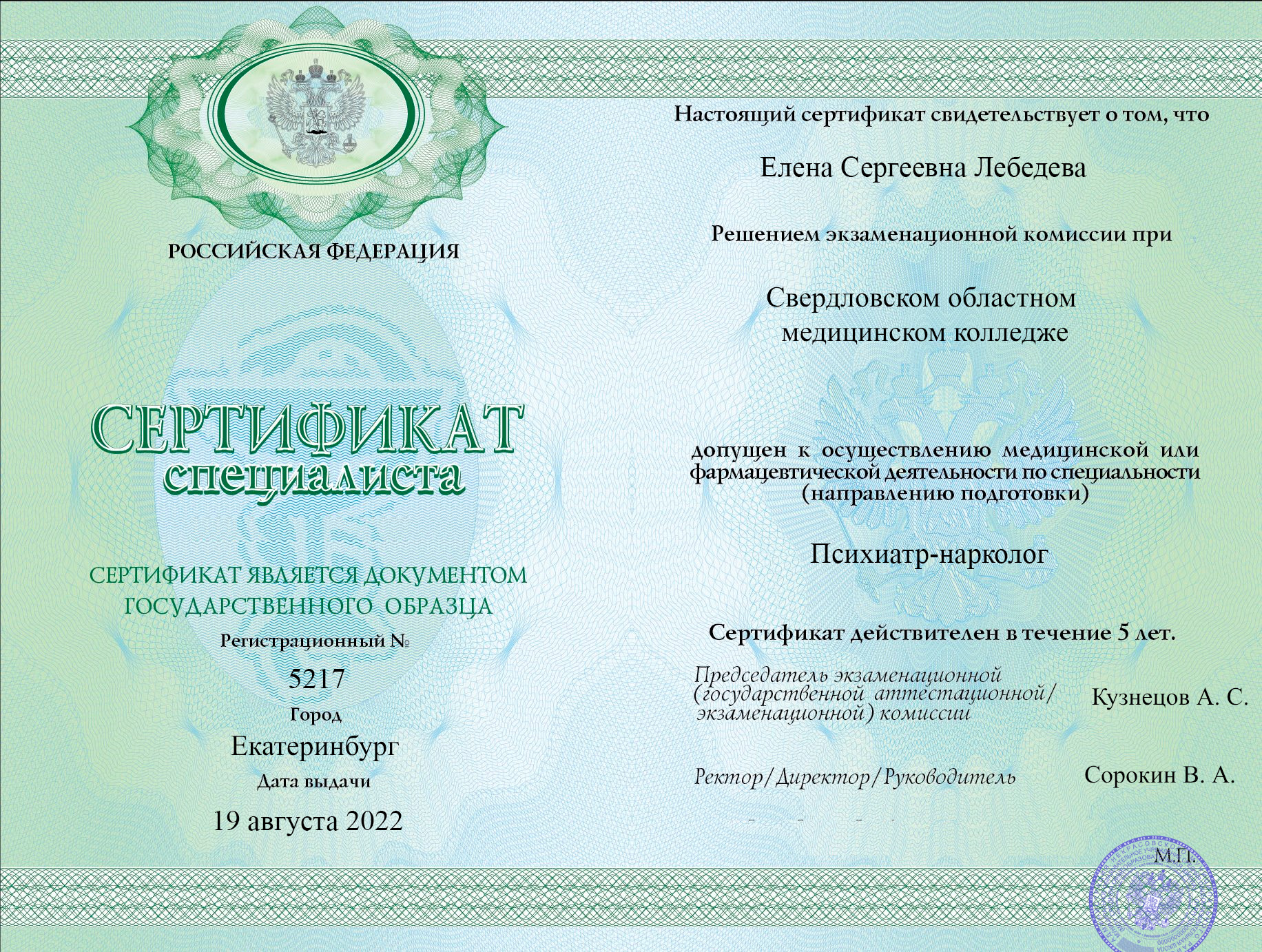 Елена Сергеевна Лебедева врач нарколог клиники доктора Стукаловой в Краснотурьинске